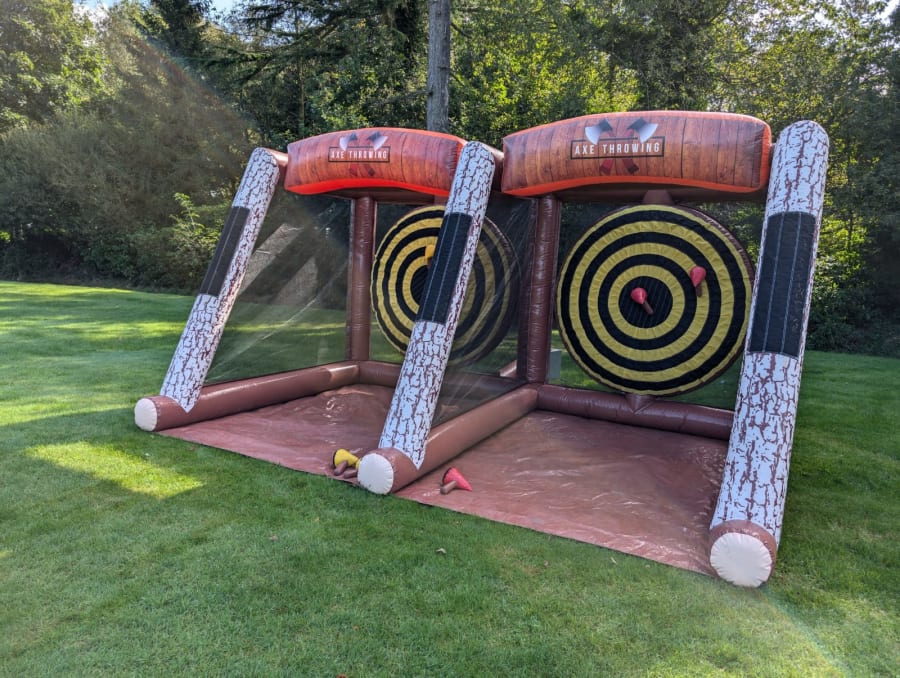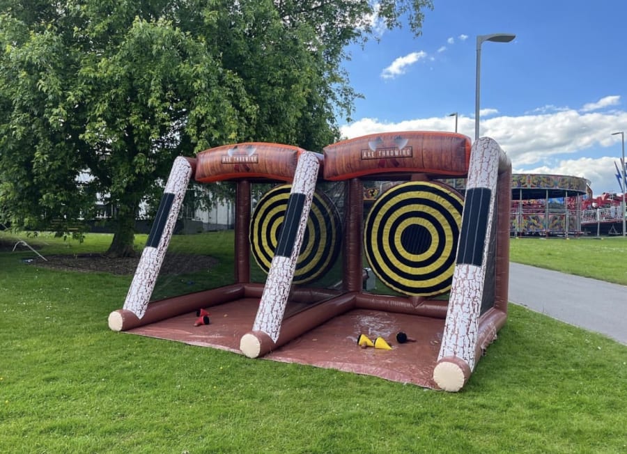Based in Swansea, JM Entertainment offers inflatable axe throwing hire throughout major cities and regions in the UK, including London, Manchester, and Birmingham, ensuring no matter where your event is, we can provide top-notch entertainment.