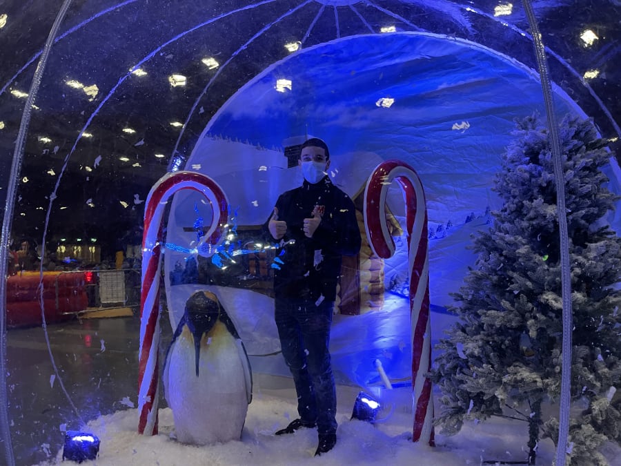 We’ll fill the inflatable chamber with airy artificial snow that flies in every direction and complete the globe with a stunning winter backdrop - all to create the perfect winter setting for you and your friends to be photographed. Convinced?