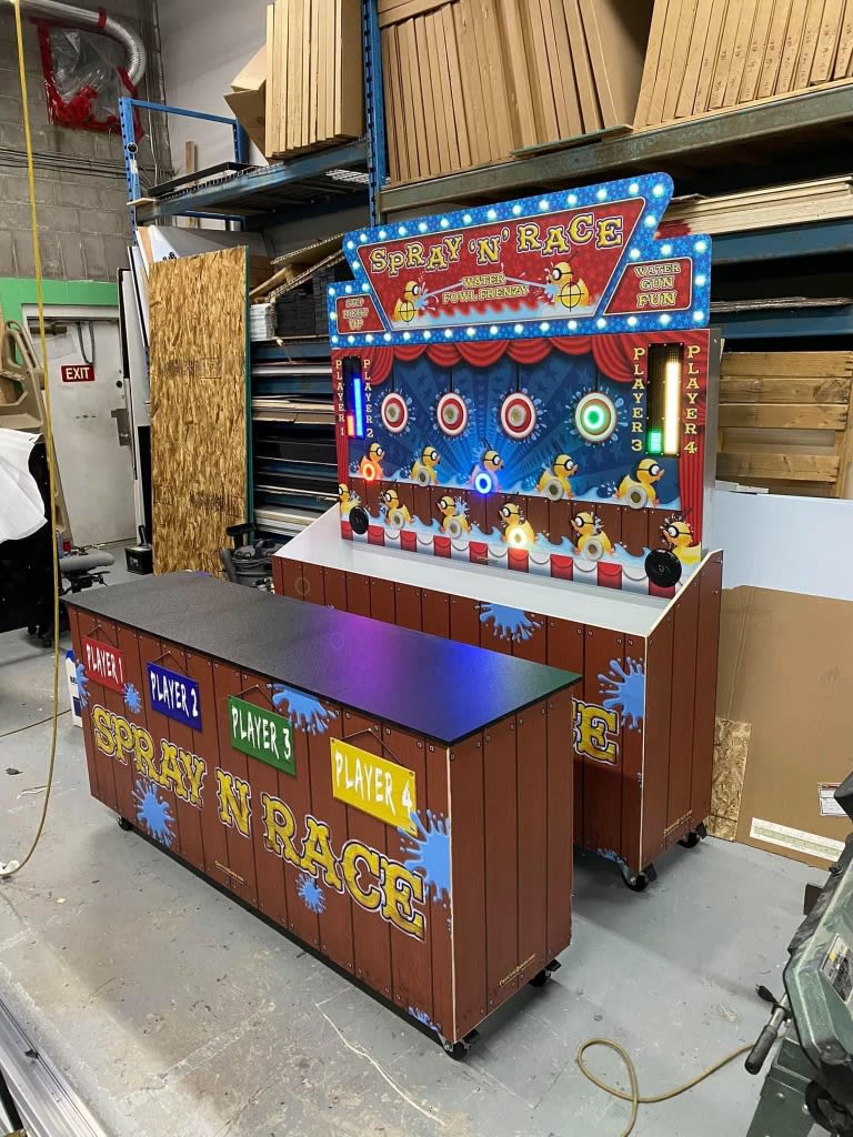 JM Entertainment offer custom branding for our Spray N' Race Game please contact us below for a free branding quote.