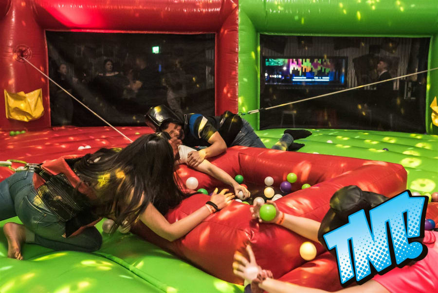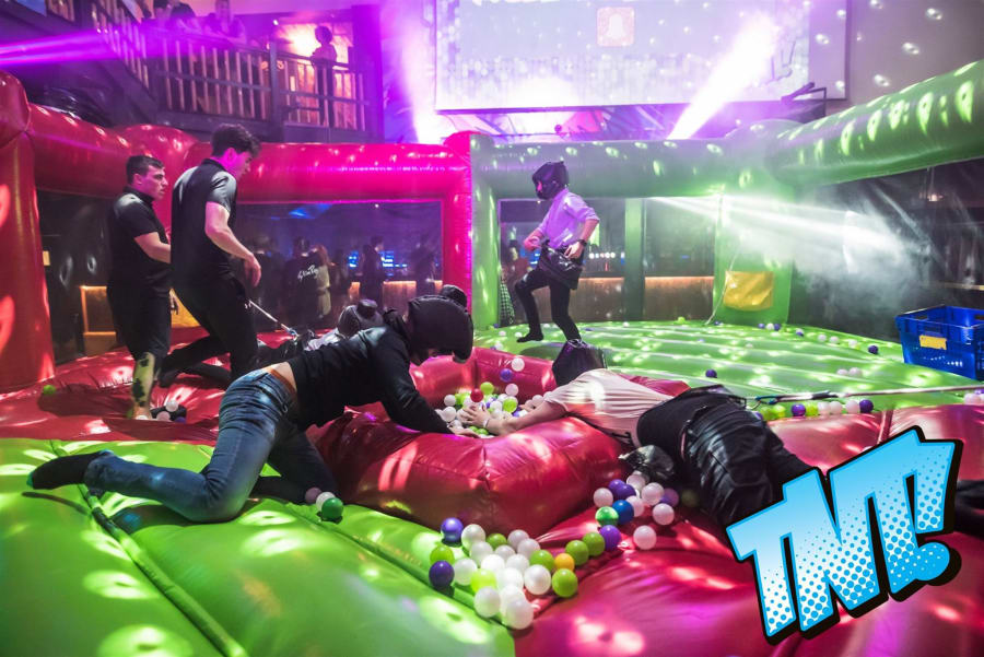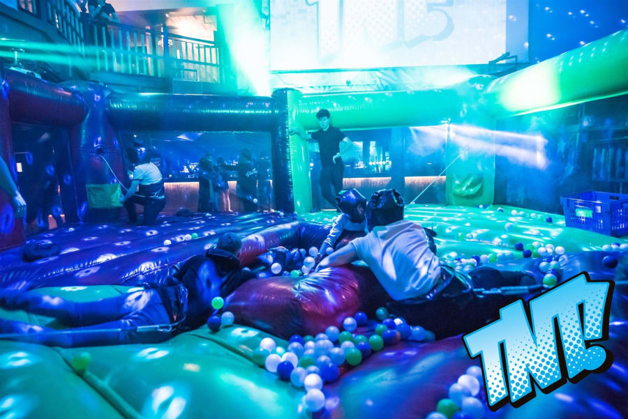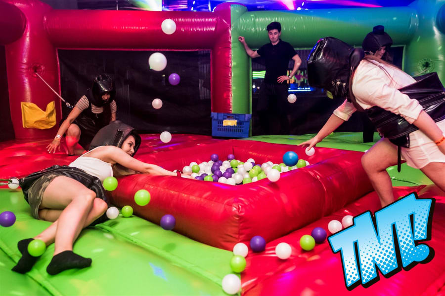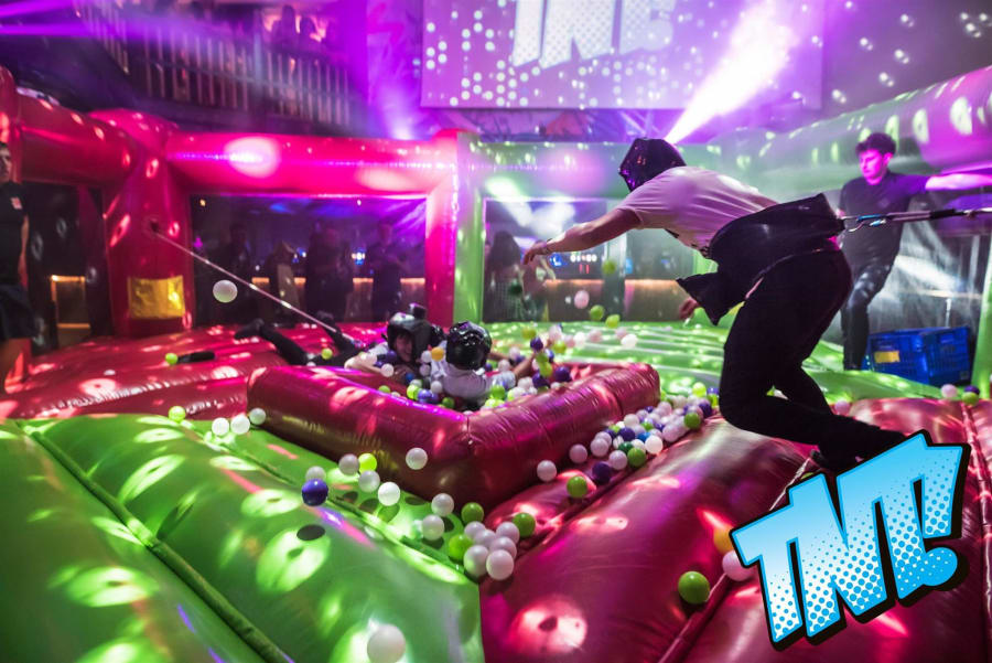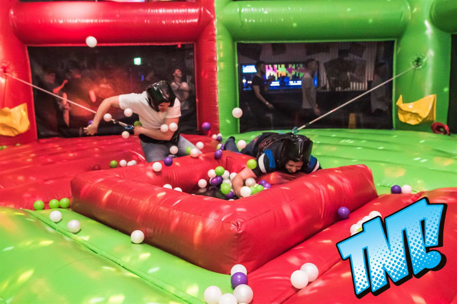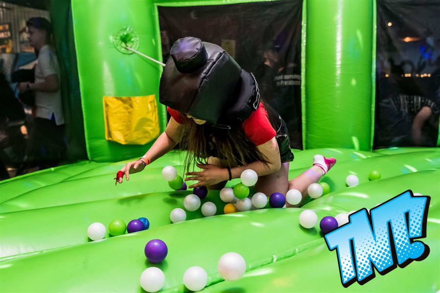 Made with all the family in mind, this game works just like the original board game, only you are the hungry hippos! All you have to do is bungee out to the ball pits and collect as many balls as possible… but it's not as easy as it sounds! The bungee will pull you back to the start if you over-stretch too much, and players will find it hard to hold onto the balls they've collected as they're pulled in all directions. The player who collects the most balls and safely deposits them in the net is the winner.