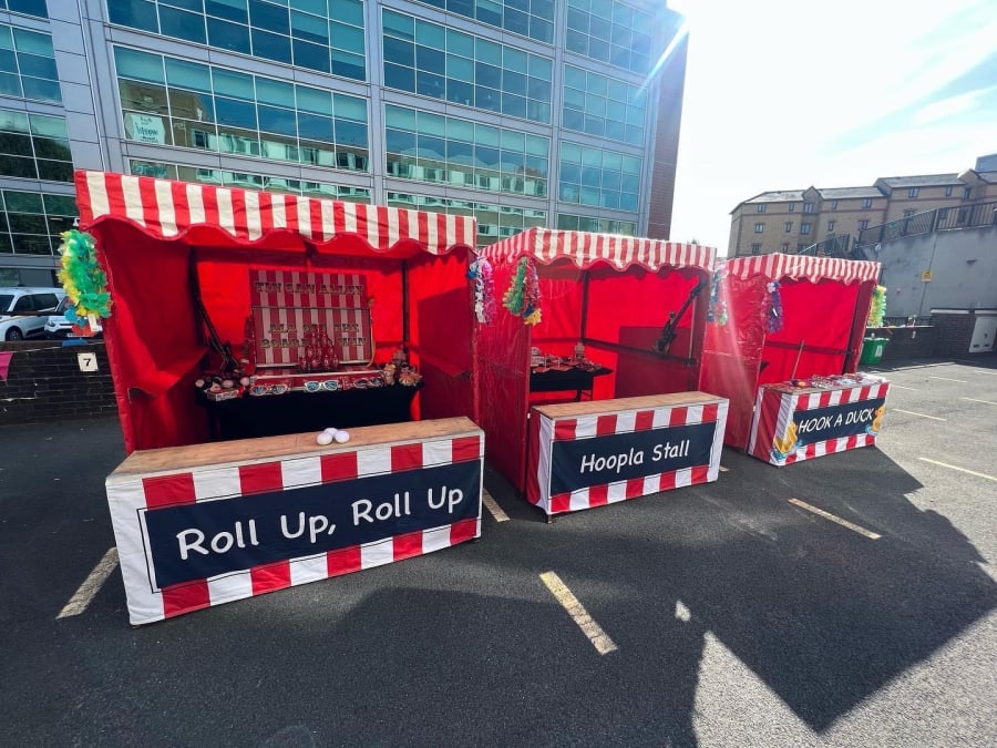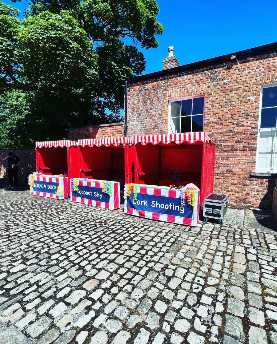 • A Red and White Striped Stall: Our eye-catching funfair side stall brings the fairground vibe directly to your event.