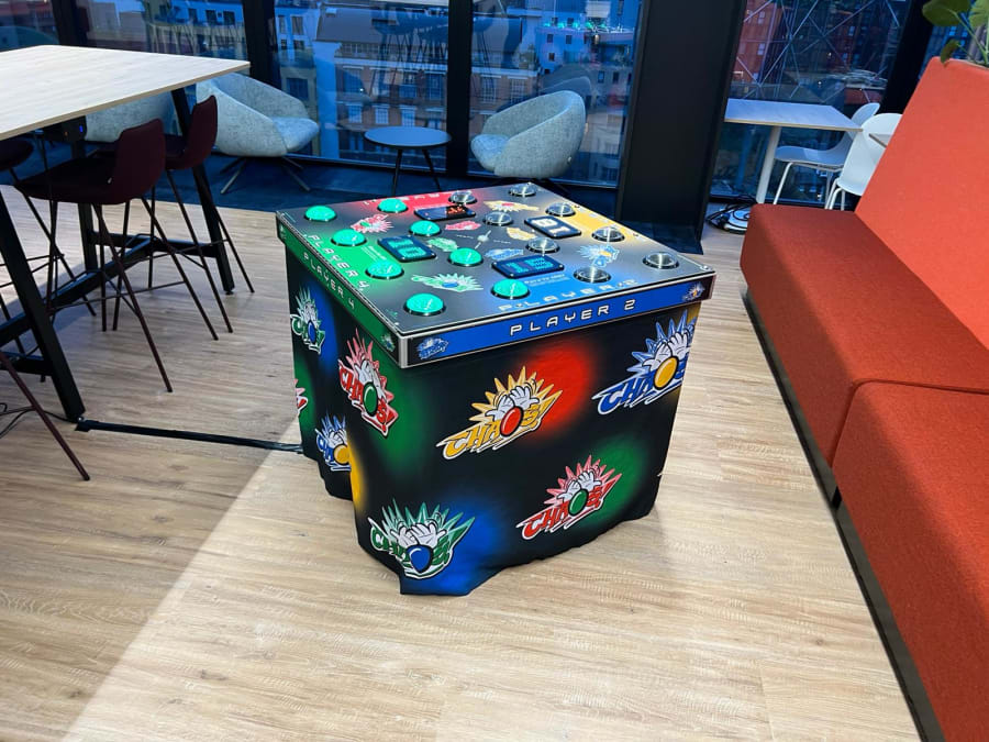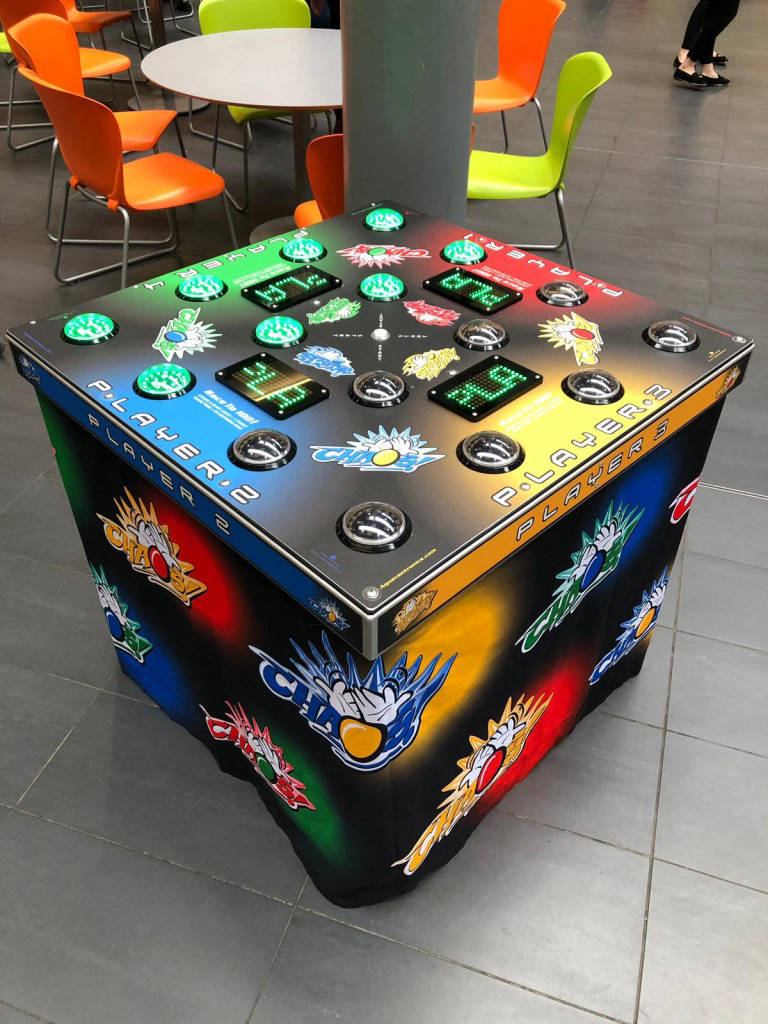 We offer custom branding on our Chaos 4, all branding is printed and applied in-house by our team enabling us to deliver a fully branded game to your event.