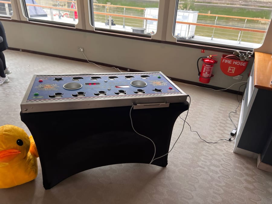 Pluck A Duck is a game where 2 players go head to head in a straight race removing ducks 1 to 5. Then there is the tricky star to finish the game, STOP the clock and the fastest time wins. We have different size ducks and stars so the game can be made easier or harder to suit the event.
