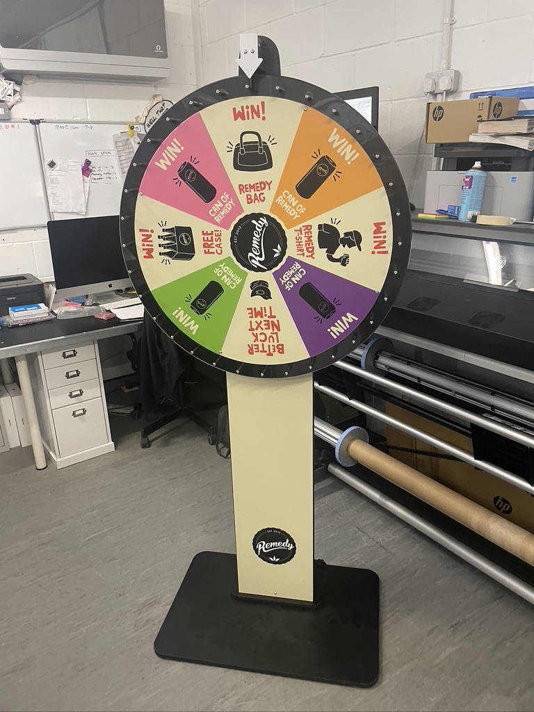 Our service related to serving event materials is a popular attraction at various events, including brand activations, promotional campaigns, trade shows, and exhibitions. One of the best features of our prize wheels is the ability to fully customise them to match your brand’s colours and logos, ensuring that they seamlessly fit into your event’s theme. This visual appeal not only attracts visitors but also makes your brand stand out in a crowd. The simplicity of the game makes it easy for participants to engage with—just spin the wheel to reveal the prize they’ve won!