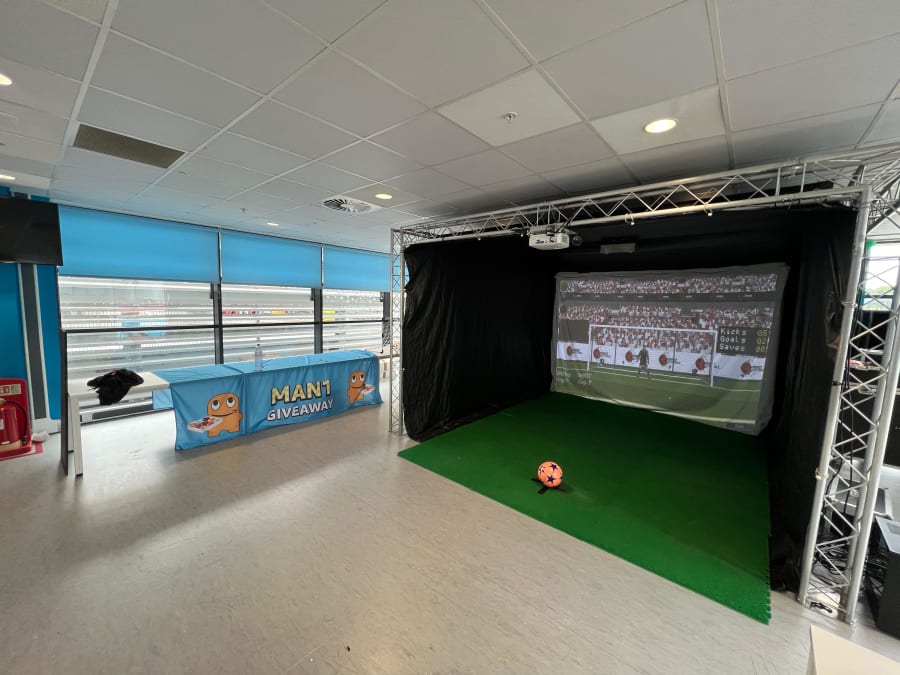 The football simulator is attended and overseen by one of our trained staff. The football simulator is the perfect centre piece to any promotion, exhibition stand, party, product launch or event.